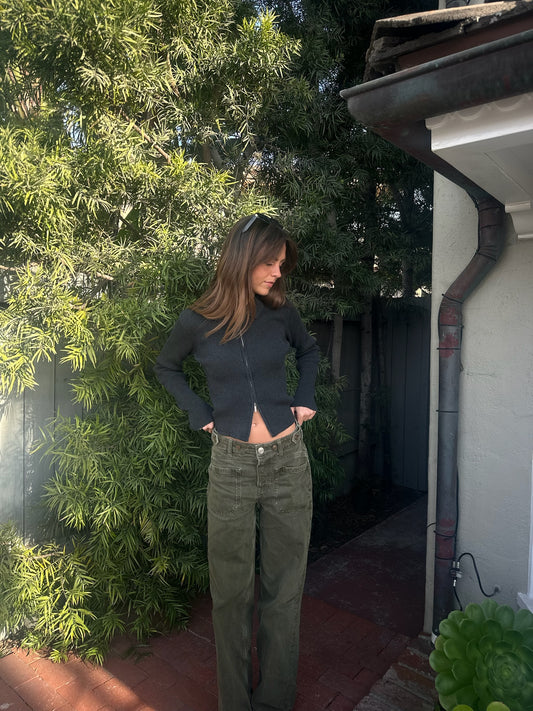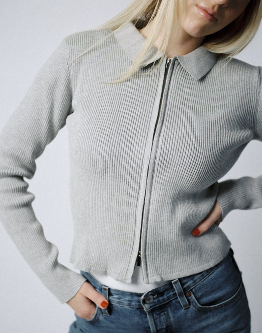 The Kieran Top | Collared Zip-Up Knit Top (Grey)