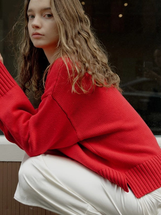 The Anna Sweater | Knit Sweater with Contrast Side Seam